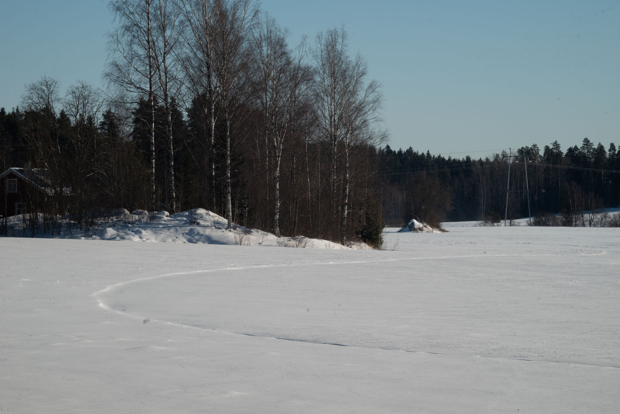 Time and place: Northern Uusimaa countryside 22.02.2026, early afternoon Weather: Sunny, -4° C. Nikon Z5, K&F concept M42->Nikon Z adapter, Super-Takumar 150 mm f/4 lens. All shots in RAW, handheld with IBIS on. Edit in post: ACR default conversion only1, straighten, resize to 2k, save as JPEG quality 60.