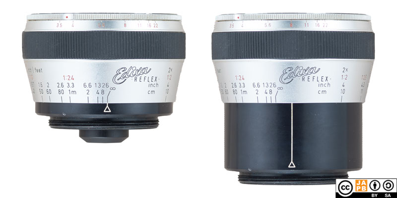 Right: Kilfitt Makro-Kilar 40 mm f/3.5 (M42 mount) focused at MFD