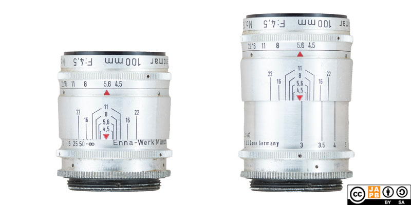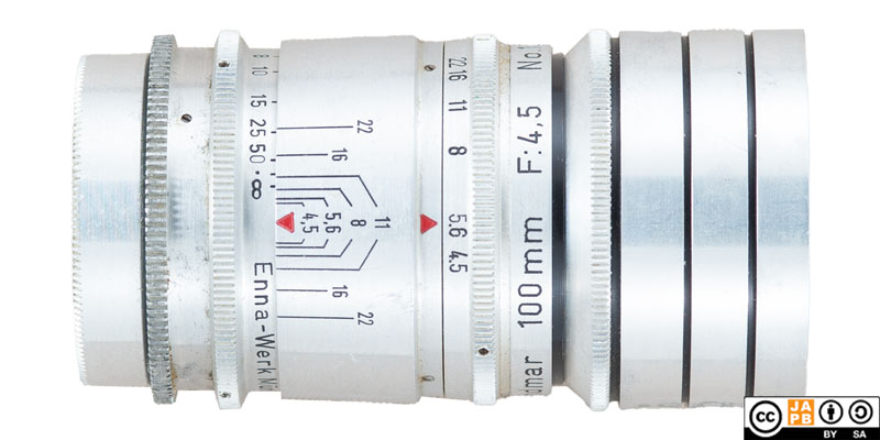 The 100 mm f/4.5 Enna Sandmar was also sold by Argus as the Argus Sandmar, but they are fundamentally the same lens.