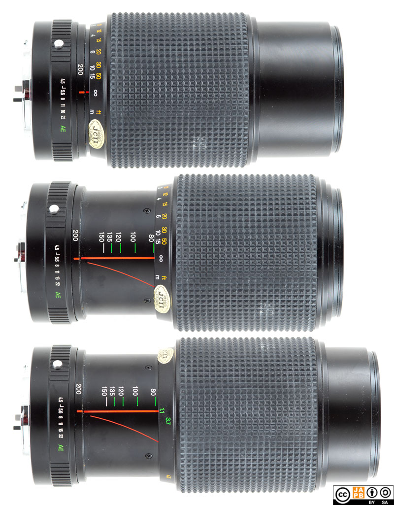 • The lens’ length does not change when zooming, but the lens lengthens a bit when focused towards MFD.