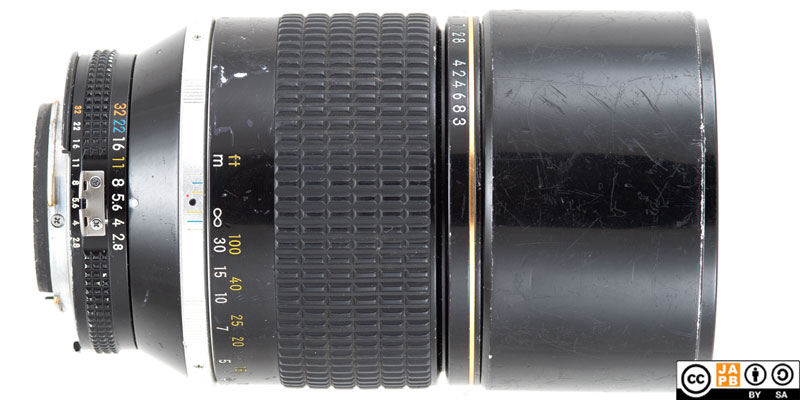 • When Nikon introduced it’s Autofocus system in 1986, one of the first lenses in that system was a 180 mm f/2.8 lens clearly intended to replace this lens. Even so, this manual focus version was kept in the lineup until 2005. During those 24 years a bit over 74 000 copies were made.