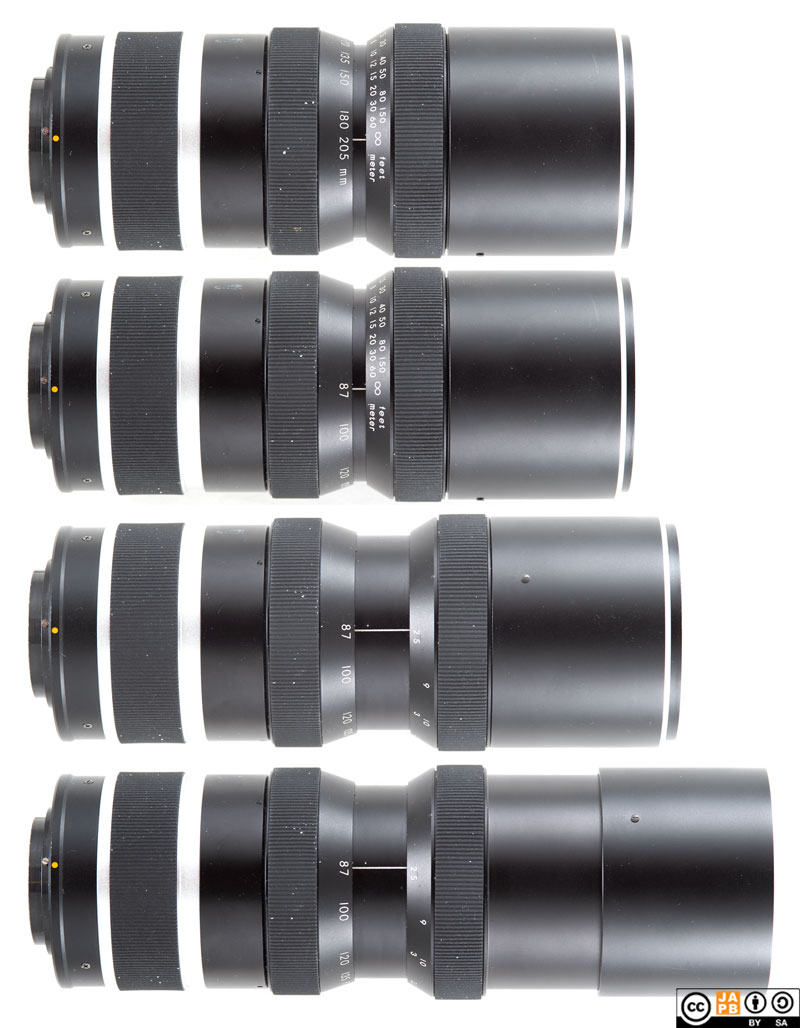 Top: Topcon HI TOPCOR 87–205 mm f/4.7 zoomed to 205 and focused to infinity