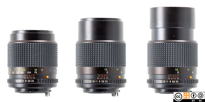 Centre: Vivitar 135 mm f/3.5 Focused at MFD with hood retracted