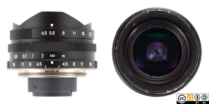 • Being an extreme wide-angle, the lens is characterised by extreme depth of field, and at f/16 the entire focusing range (0,3m to infinity) falls within the depth of field.